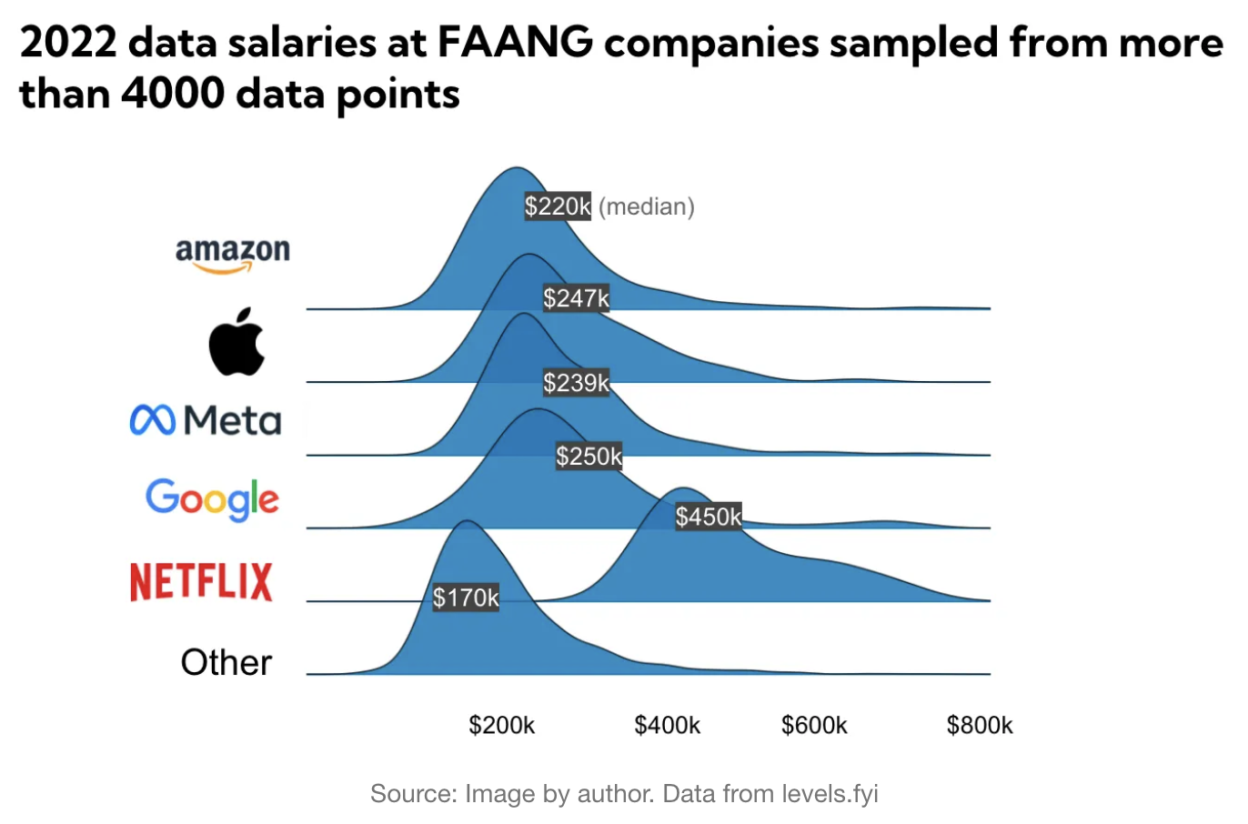 Let's check out some salary data for workers at FAANG companies, across five areas: